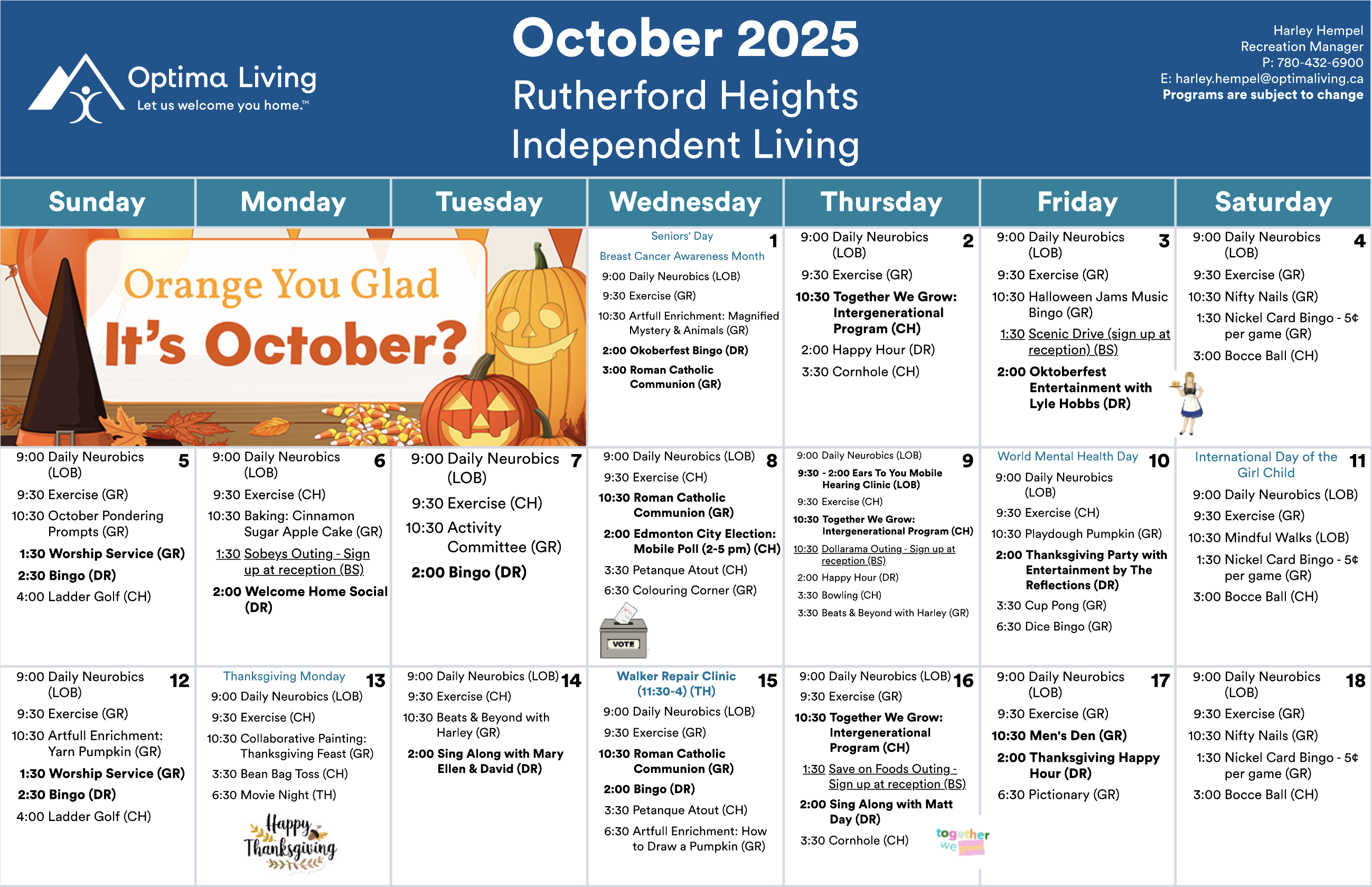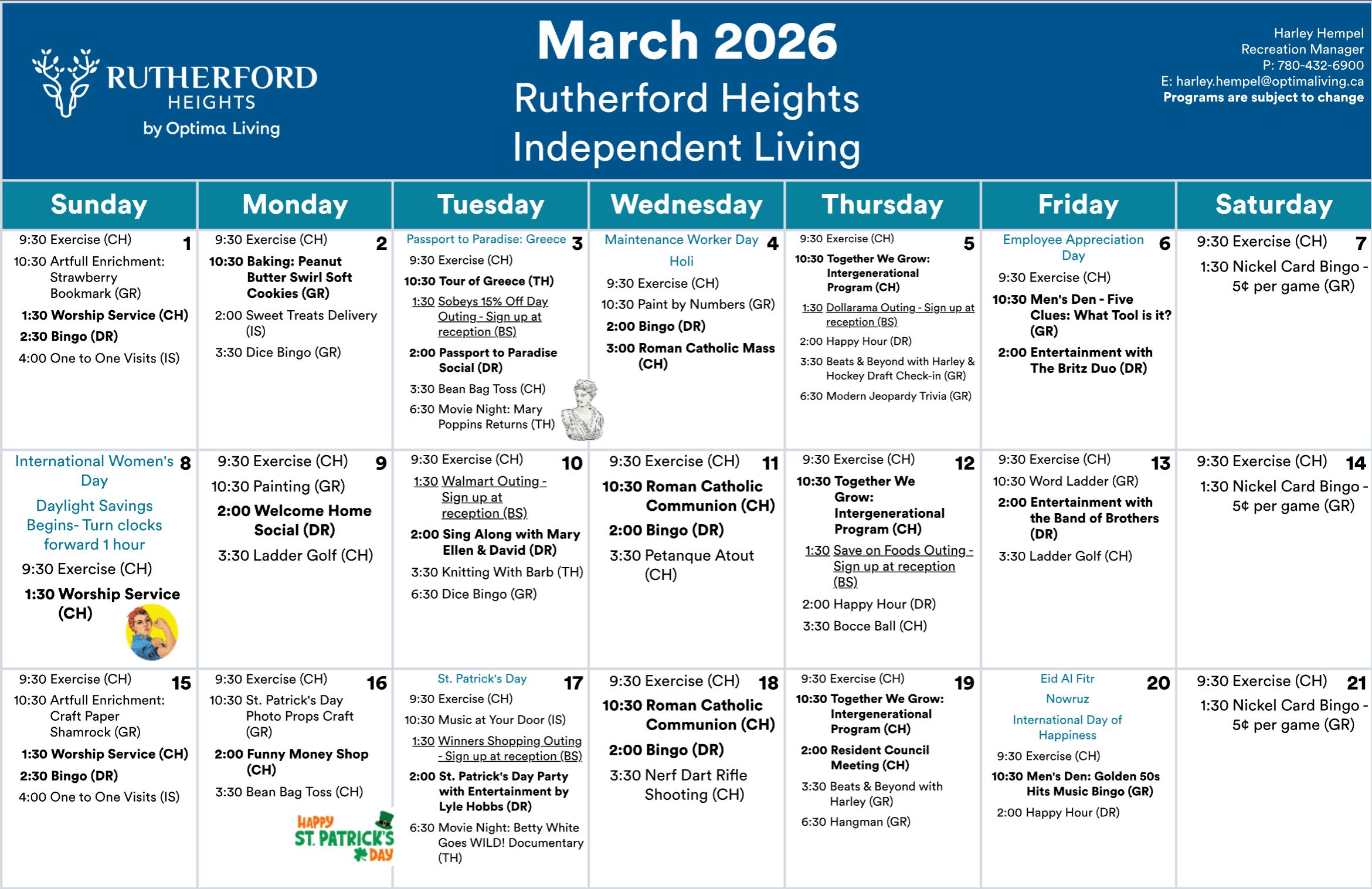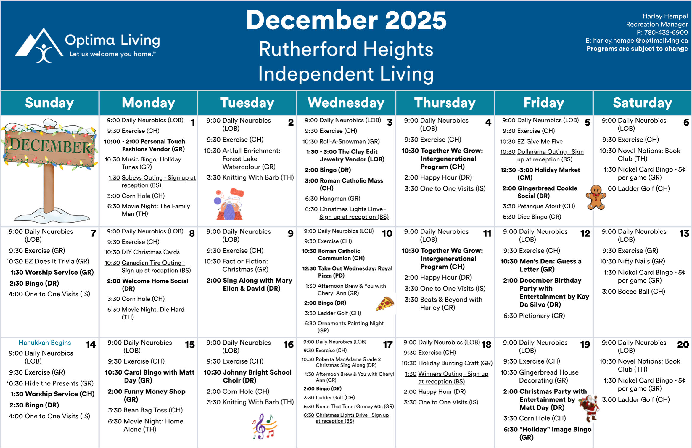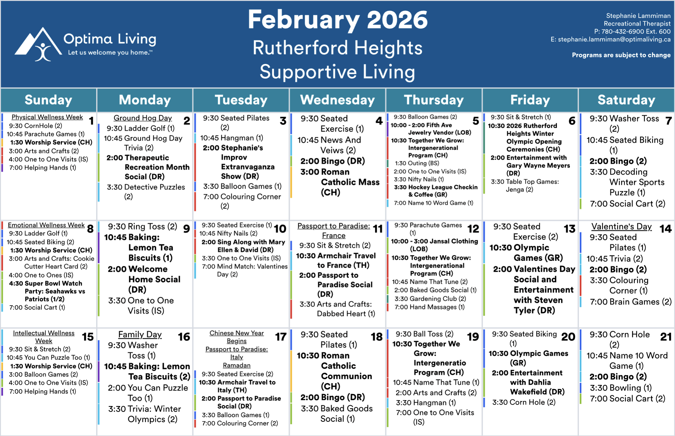 Rutherford Heights events subject to change. Not all events open to the public. Call for details.