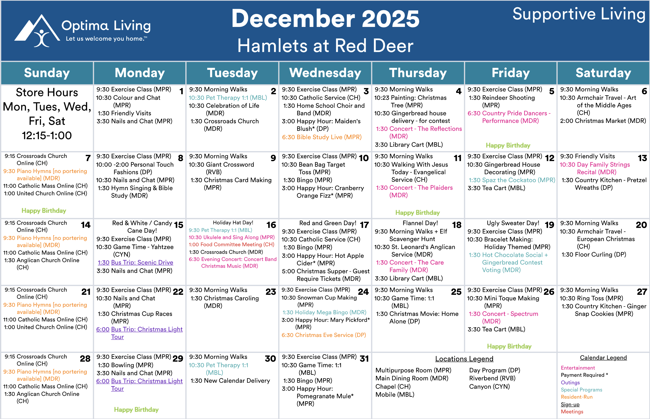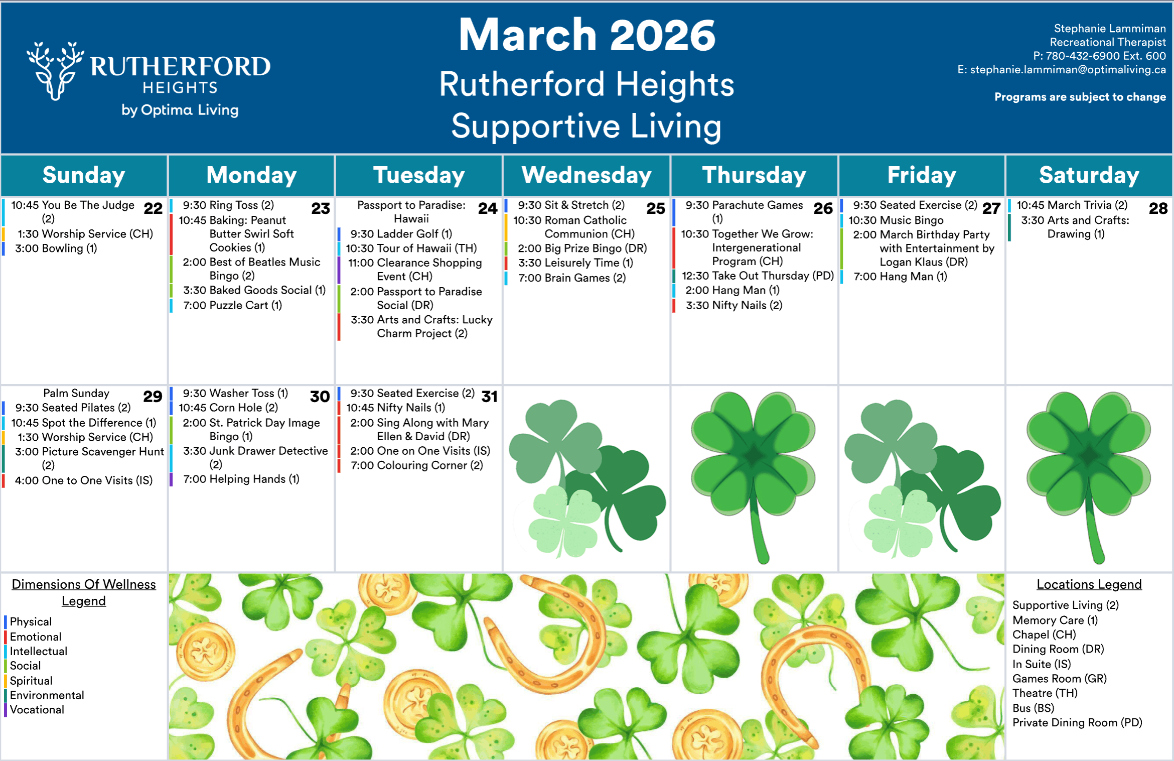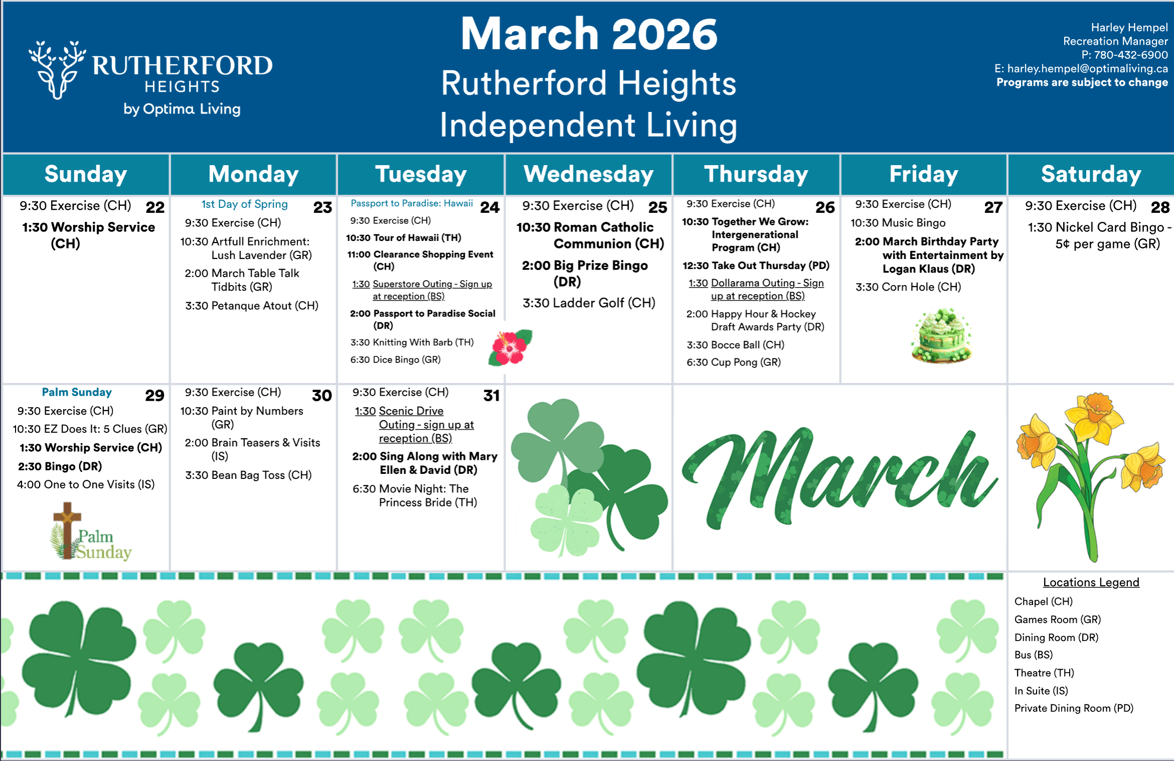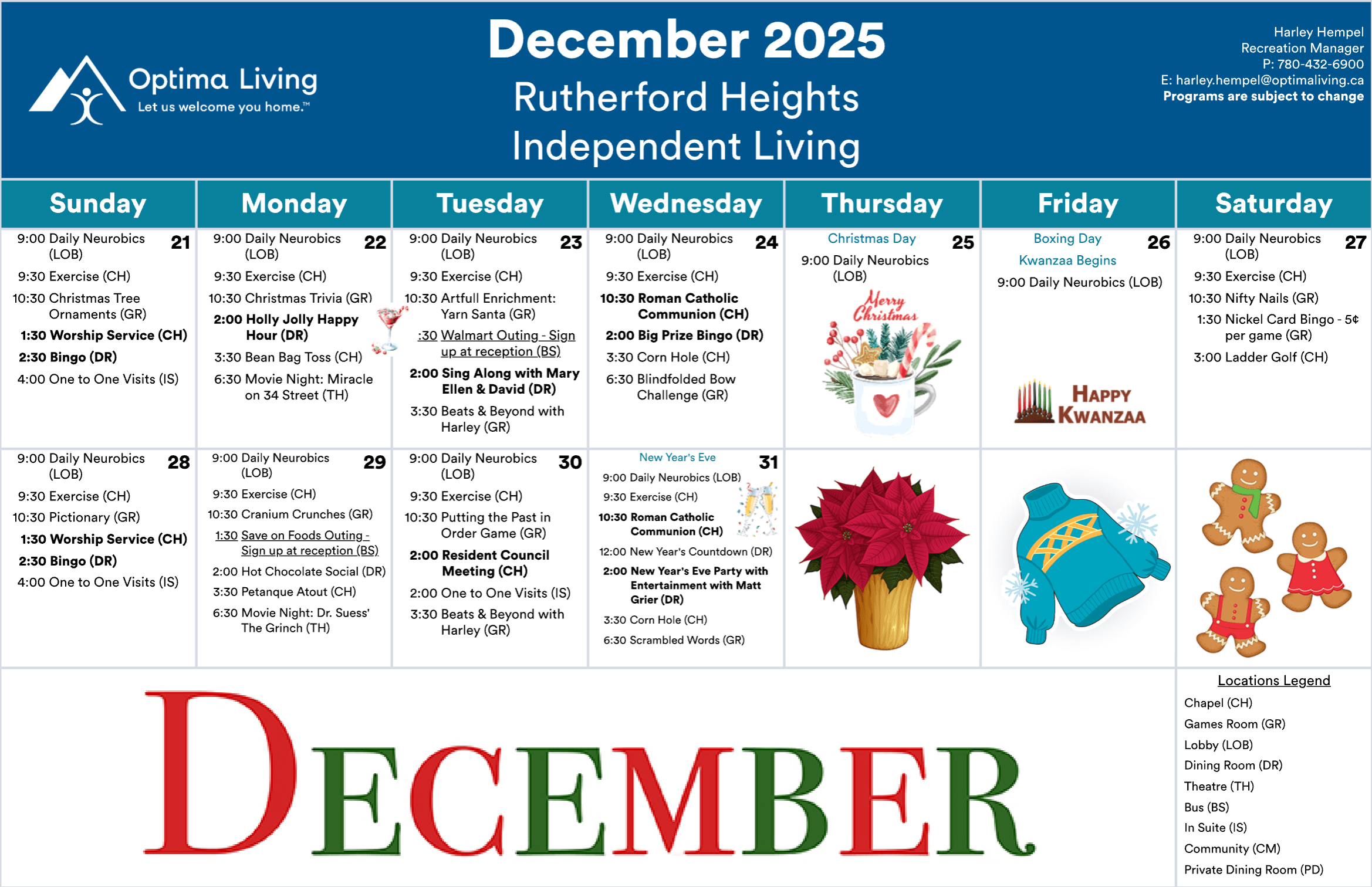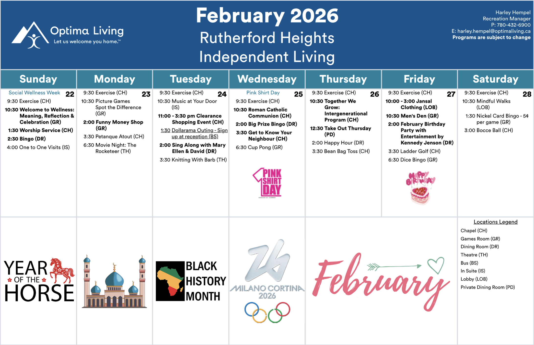 Rutherford Heights events subject to change. Not all events open to the public. Call for details.